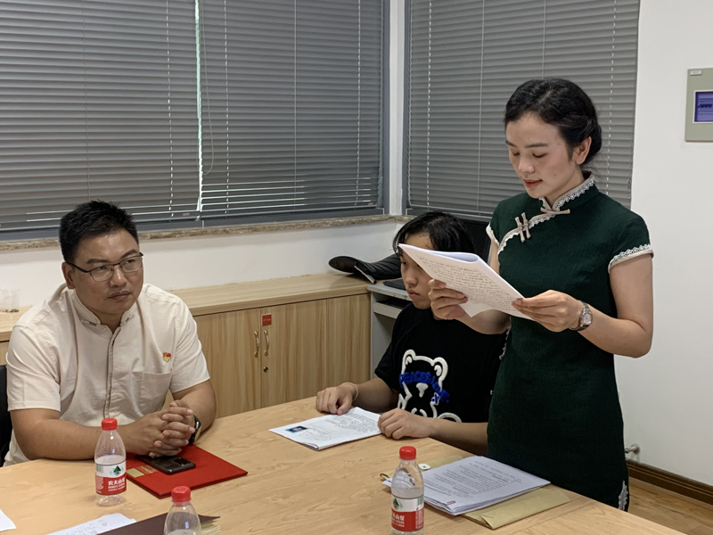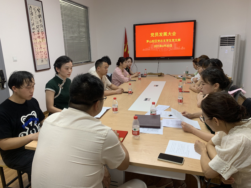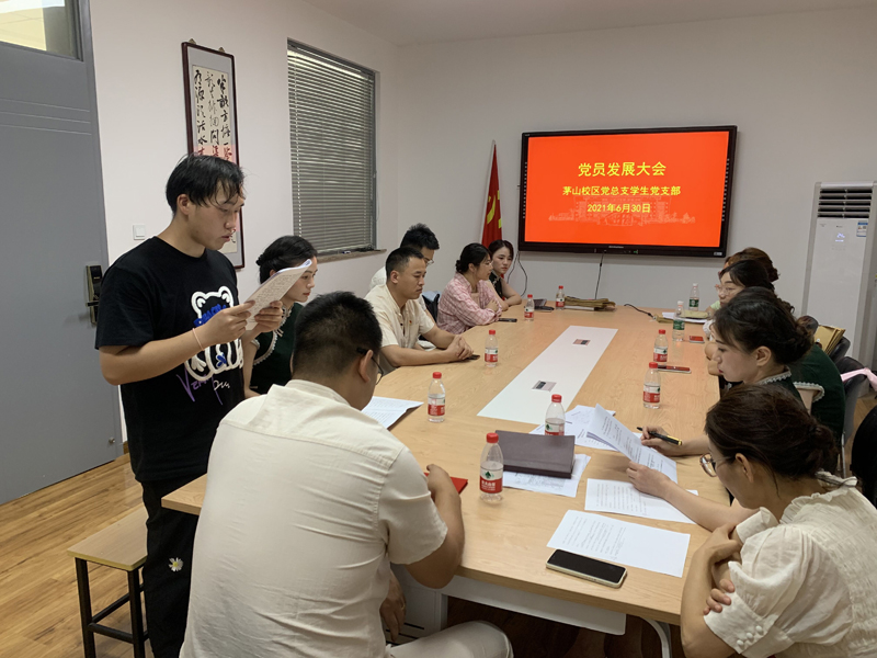 大会共有六项议程,一是发展对象仇蓓蓓、梁奕两位同志汇报有关情况;二是入党介绍人封寒、朱锦、张培三位同志介绍仇蓓蓓、梁奕两位同志的有关情况;三是宣传委员封寒报告仇蓓蓓、梁奕两位同志的审查情况;四是与会党员发表意见,对仇蓓蓓、梁奕两位同志能否入党进行充分讨论;五是全体党员进行无记名投票。经过投票,最终一致同意仇蓓蓓、梁奕两位同志为中共预备党员,预备期自2021年6月30日起。最后,在支部书记的带领下,两位预备党员进行了入党宣誓。
