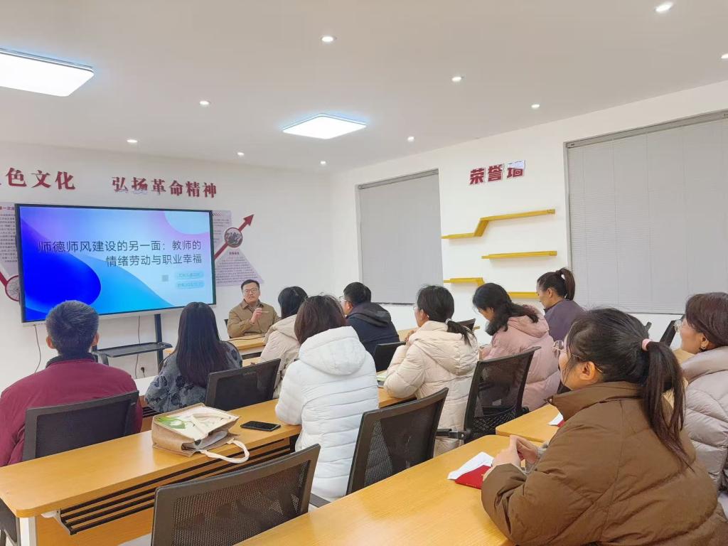 为持续深化师德师风建设,筑牢教育育人根基,12月12日,茅山校区党总支在“党员之家”举办第三期师德大讲堂专题活动。校区管委会副主任李国晓以《教师的情绪劳动与职业幸福感》为题,与校区全体教学教务管理人员展开深入交流探讨,为推进师德建设与教师队伍发展注入思想动力。