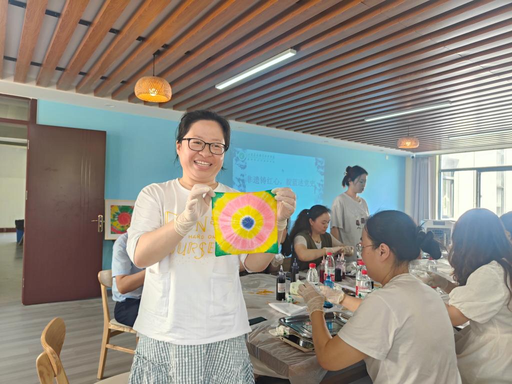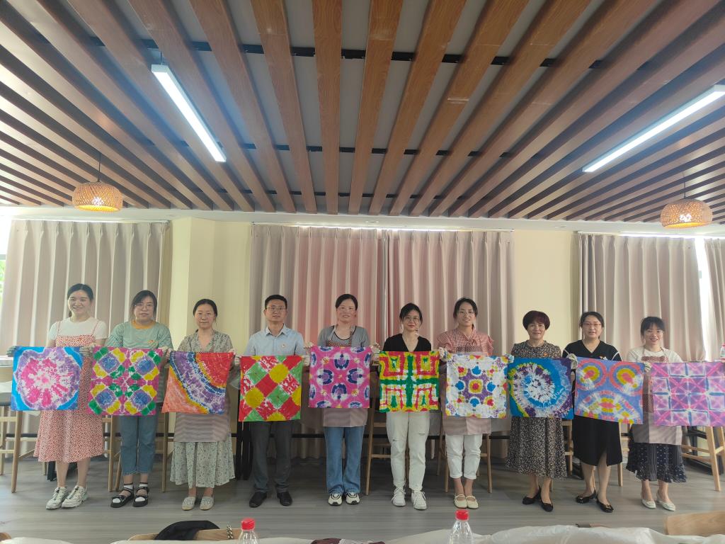 为深入学习贯彻习近平新时代中国特色社会主义思想和党的二十大精神,切实提高党员教育培训工作质量,推进马克思主义学习型政党建设,6月9日上午,由组织人事处主办、茅山校区党总支承办的“非遗铸红心 靛蓝述党史”扎染体验活动成功举办,全院30余位党支部书记、党员代表参加了活动。