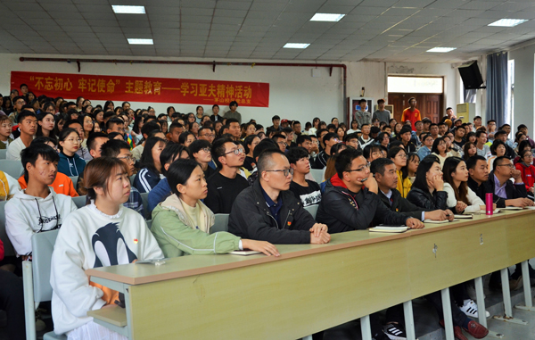 10月30日,为响应学校“不忘初心、牢记使命”学习亚夫精神活动要求,校区在报告厅设立学习分会场,组织全体党员老师和三百多名学生代表观看转播,学习亚夫精神。