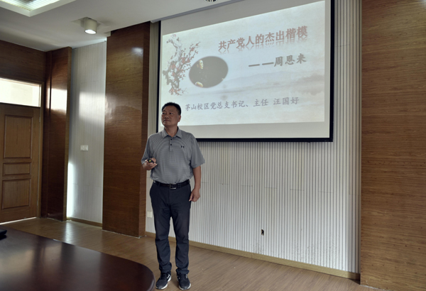 汪书记重点以周恩来总理的先进事迹为例,介绍了周总理成长环境、学习经历、革命生涯、外交生涯等一系列先进事迹。重点讲解了习近平总书记对周总理“六个楷模”的介绍。要求校区全体党员不忘初心、牢记使命,跟周总理学做人、学做楷模、学做革命。本次党课,每位党员都深受感染,接受了一次党性的洗礼!