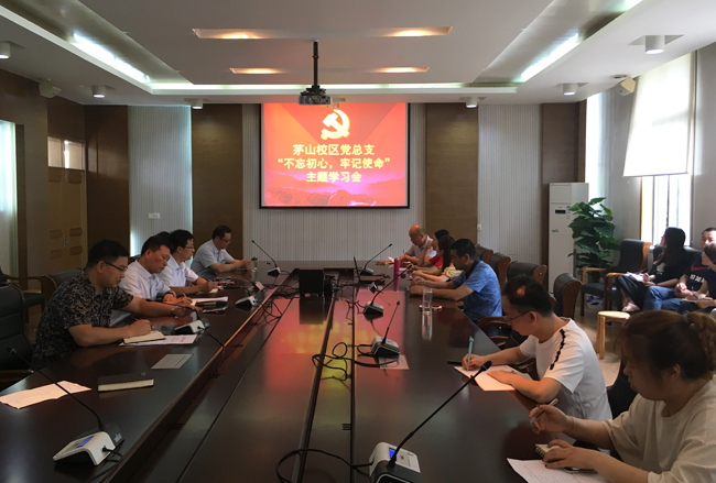 为扎实开展“不忘初心牢记使命”主题教育,6月18日下午2点,校区党总支全体党员深入学习贯彻习近平总书记重要讲话精神,精心组织开展了“不忘初心、牢记使命”主题教育。会议由校区党总支副书记汤波主持。
