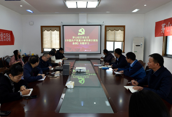11月11日,校区党总支开展《中国共产党重大事项请示报告条例》专题学习。《中国共产党重大事项请示报告条例》有利于提高重大事项请示报告工作制度化、规范化、科学化水平。对此,我们基层工作者一定要强化思想自觉和行动自觉,该请示的必须请示,该报告的必须报告,该负责的必须负责,该担当的必须担当,把请示报告要求贯彻到各项工作中、体现在实际行动上,不折不扣做好请示报告工作。学习要求校区党员同志正确认识请示报告制度,认真落实请示报告制度。