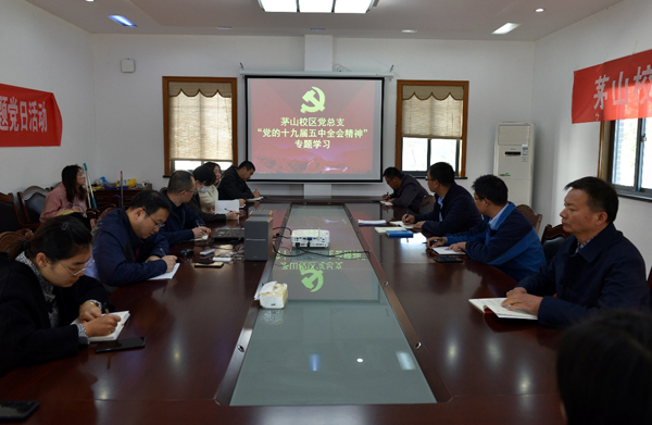 11月11日,校区党总支在校区行政楼会议室开展“党的十九届五中全会精神”专题学习。十九届五中全会阐明了新冠疫情流行下党和国家始终坚持稳中求进工作总基调,始终把人民健康放在第一位,重点抓“六稳”,突出民生至上。会议总结了“十三五”规划取得的成就和不足,明确“十四五”规划的方向。会议强化了责任担当,党员干部要以习近平新时代中国特色社会主义思想为指导,坚定决心,科学谋划,对照目标任务,定向分析、科学查找,强弱项、补短板,强化责任担当。学习过程中各党员同志积极思考,认真做好笔记,确保学习入心、入脑。