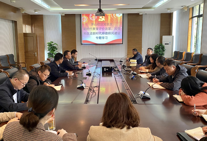 10月27日,校区党总支在校区图书馆开展新时代教育评价改革、加强和改进新时代师德师风建设专题教育。中共中央、国务院印发了《深化新时代教育评价改革总体方案》以下简称《方案》,校区党总支重点学习了《方案》总体要求包括指导思想、主要原则、改革目标;重点任务包括改革党委和政府教育工作评价,推进科学履行职责、改革学校评价,推进落实立德树人根本任务、改革教师评价,推进践行教书育人使命、改革学生评价,促进德智体美劳全面发展、改革用人评价,共同营造教育发展良好环境;组织实施包括落实改革责任、加强专业化建设、营造良好氛围等。同时学习了《关于加强和改进新时代师德师风建设的意见》。总支书记汪国好强调,要把新时代教育评价改革和新时代师德师风建设结合起来。评价中体现师德师风的重要性,师德师风建设促进教育评价改革。